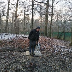 Zu meiner Freude wurde ich im November gefragt, ob ich das WSC-Team bei einer Studie, der Bshary study, unterstützen kann und natürlich war meine Antwort „Ja“. In dieser Studie wird getestet, ob die Tiere Eventualitäten und Gelegenheiten erkennen können. Es gibt zwei Partner, zwischen denen sich die Wölfe und Hunde entscheiden können. Einen familiären Partner, der sozusagen immer zur Verfügung steht und von den die Tiere immer ein Stück Fleisch bekommen, wenn dieser gewählt wird. Der zweite Partner ist der unfamiliäre Partner, der nur kurzfristig zur Verfügung steht. Wählt der Hund zuerst den familiären Partner, so entgeht ihm die Gelegenheit sich vom anderen Partner ebenfalls ein Stückchen Fleisch zu holen. So soll das Tier lernen welcher Partner zuerst gewählt wird, um an mehr Futter zu kommen. Soviel zur Theorie, aber das Testen von Tieren sieht immer etwas anders aus.